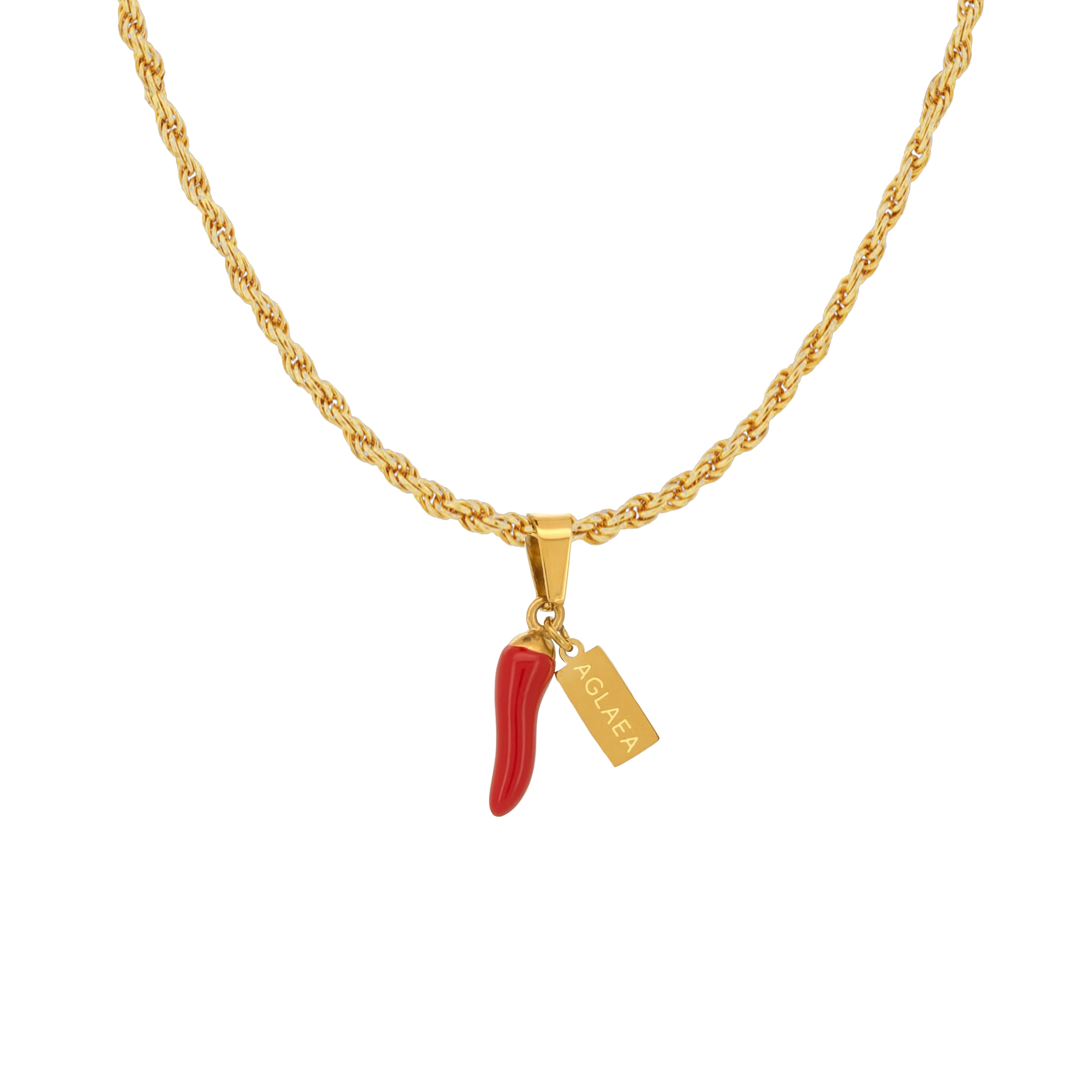 A little charm with big energy—the Cornicello Necklace is your everyday touch of protection and luck. Featuring the iconic red horn and our Aglaea tag, it’s rooted in tradition and made to stand out, worn solo or layered.
