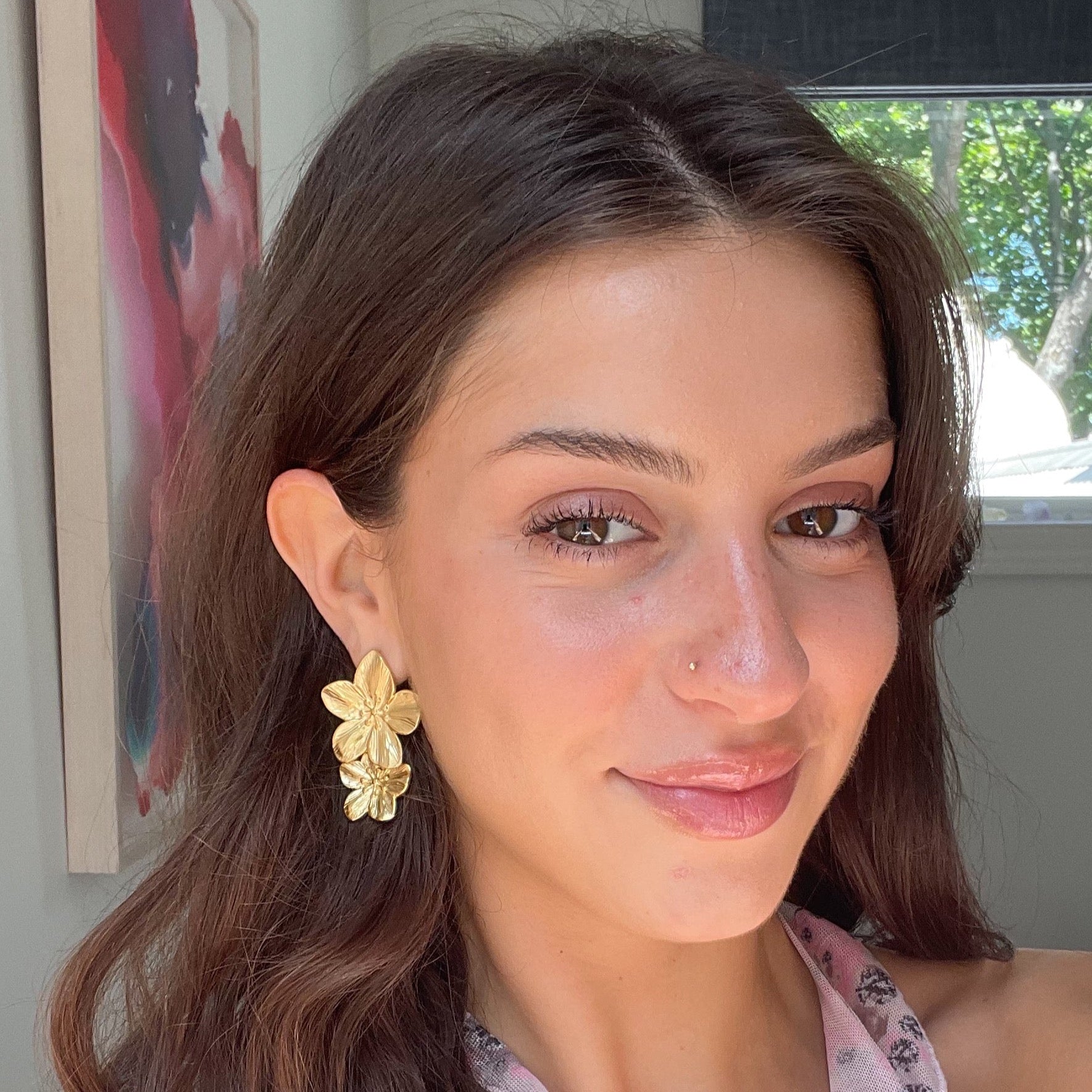 These aren't just accessories; they're an ode to timeless elegance and the enchanting mystique of the Mediterranean's natural splendor. Whether you're dressing up for a special occasion or adding a touch of sophistication to your everyday ensemble, the Hibiscus Earrings are a captivating choice.