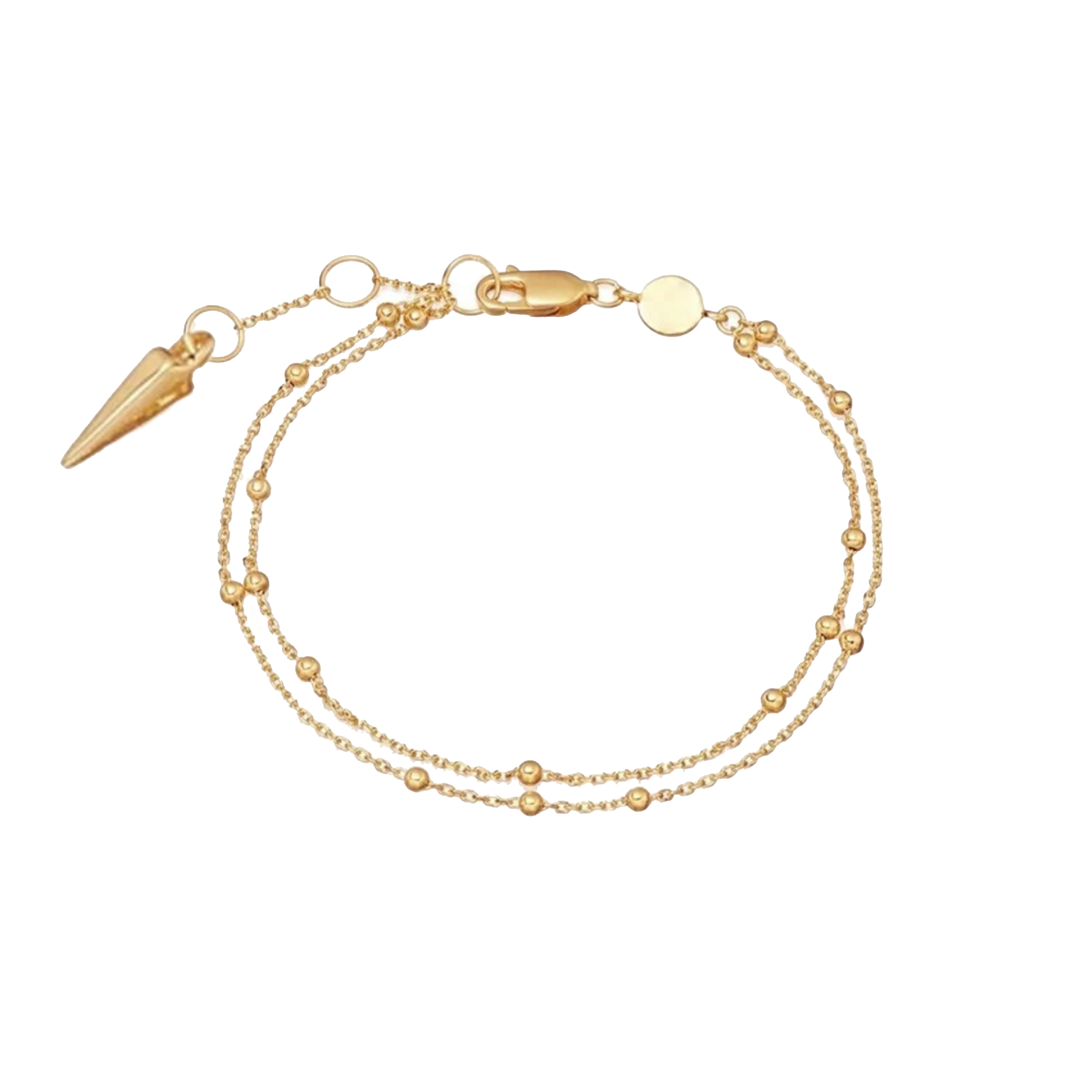 Elevate your wristwear with our Cora bracelet, a reflection of celestial beauty and modern sophistication. Featuring two parallel satellite chains, this bracelet captures the delicate intricacy of twinkling stars against the vastness of the night sky. Its lightweight design ensures a comfortable fit, while the spaced beads add a hint of shimmer, making every gesture shine. A perfect addition to both minimalist and layered styles, this bracelet brings a touch of the cosmos to your everyday.