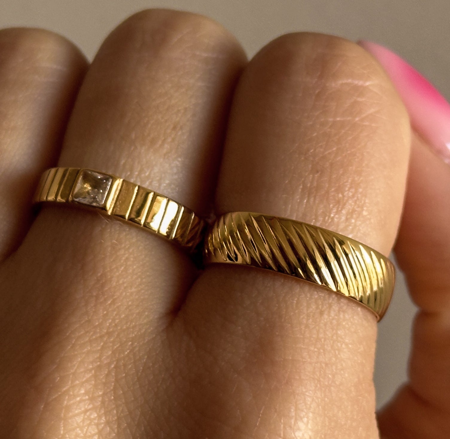Embrace timeless elegance with our Zaria Ring. Made with 18k Gold Stainless Steel, this ring is more than just jewellery—it's a statement. Perfect for anniversaries, or simply to treat yourself, this ring not only boasts a radiant finish but promises durability and comfort. Its hypoallergenic properties ensure it's gentle on the skin, making it perfect for all-day wear.