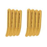 Introducing the Boston Earrings - a bold structured design with their stacked, ribbed look in a radiant gold-tone finish. Their sleek, elongated shape adds a contemporary edge, making them a perfect statement piece for those who love unique yet refined accessories. These earrings are versatile enough to pair with everyday wear or to add a touch of sophistication to evening attire.