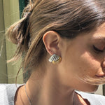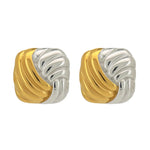 Introducing our Emmeline Earrings - These sophisticated two-toned earrings feature a unique woven knot design, blending gold and silver tones in a seamless twist. The textured pattern creates a striking visual effect, perfect for adding a touch of elegance and flair to any outfit. The combination of polished gold and silver makes these earrings versatile and timeless, ideal for both casual and formal occasions.
