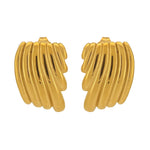 Introducing the Seraph Earrings - featuring a stunning, wing-like design with flowing, ribbed curves in a radiant gold-tone finish. Their graceful, airy shape adds a sense of movement and elegance, making them the perfect accessory for adding a touch of sophistication to any ensemble.