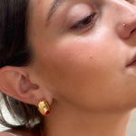 Introducing the Jordy Earrings- these bring a vibrant and whimsical touch to classic gold-tone earrings. Featuring a chunky crescent shape adorned with multicoloured gemstones, including bold pink and sparkling blue accents, these hoops are designed to stand out. Their playful yet elegant design makes them perfect for adding a fun pop of colour to any outfit.