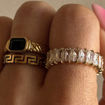 Dive into the enchantment of ancient Greece with our Grecian Meander Ring. Crafted from 18k Gold Stainless Steel, this ring showcases the timeless Meander motif, also known as the Greek Key, symbolising unity and the eternal flow of life. Its radiant gold finish exudes an air of classic elegance, making it a splendid addition to any jewellery collection. With its rich history and unmatched charm, this piece effortlessly marries the old world with contemporary style.