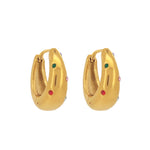 Introducing the - Marcy Hoops bring a playful pop of colour to classic gold-tone hoops, featuring vibrant, multicoloured gemstones. Their petite, chunky shape adds a modern touch, making them perfect for those who love a hint of fun in their everyday style. These hoops are an effortless way to brighten up any look with their subtle yet lively sparkle.