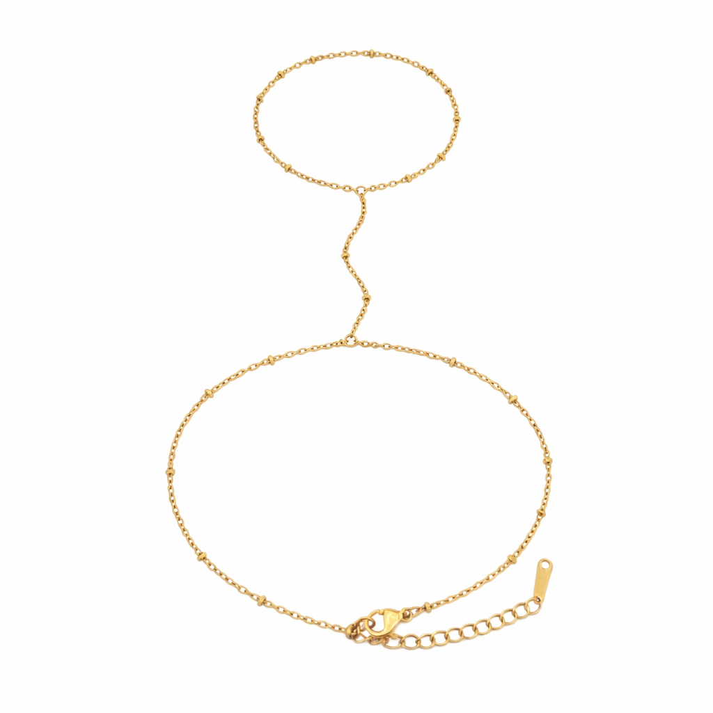 Softly luminous and endlessly wearable, the Celeste Satellite Hand Chain drapes the hand with delicate intention. Fine chain is dotted with subtle stations that catch the light with every movement.