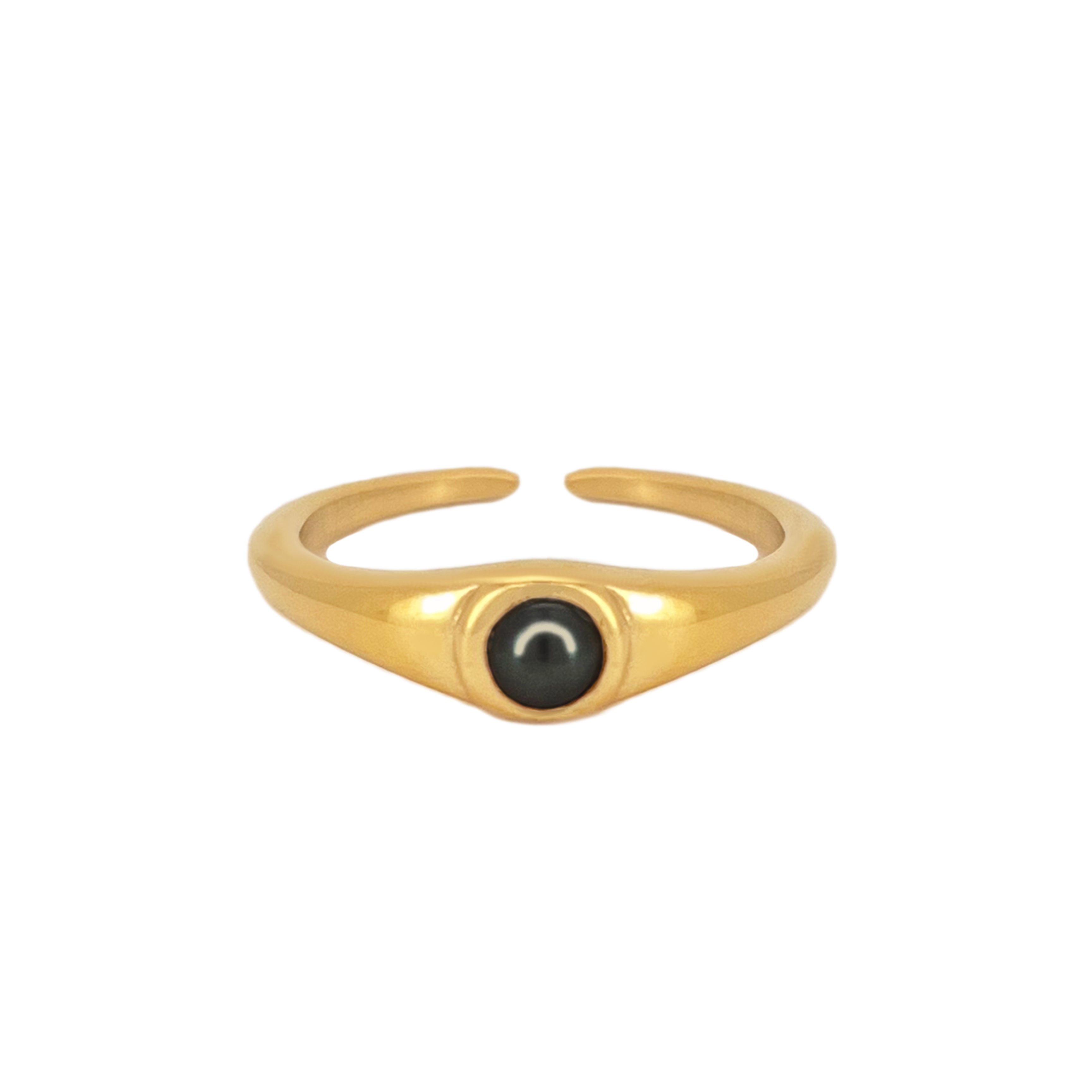 Mysterious and captivating, the Nerida Ring in Black Pearl feels like a jewel with a story. The dark pearl glows softly against its golden band, giving it that moody, vintage allure of a piece passed down through time. Perfect for adding depth to your stack or wearing solo as a quiet statement.