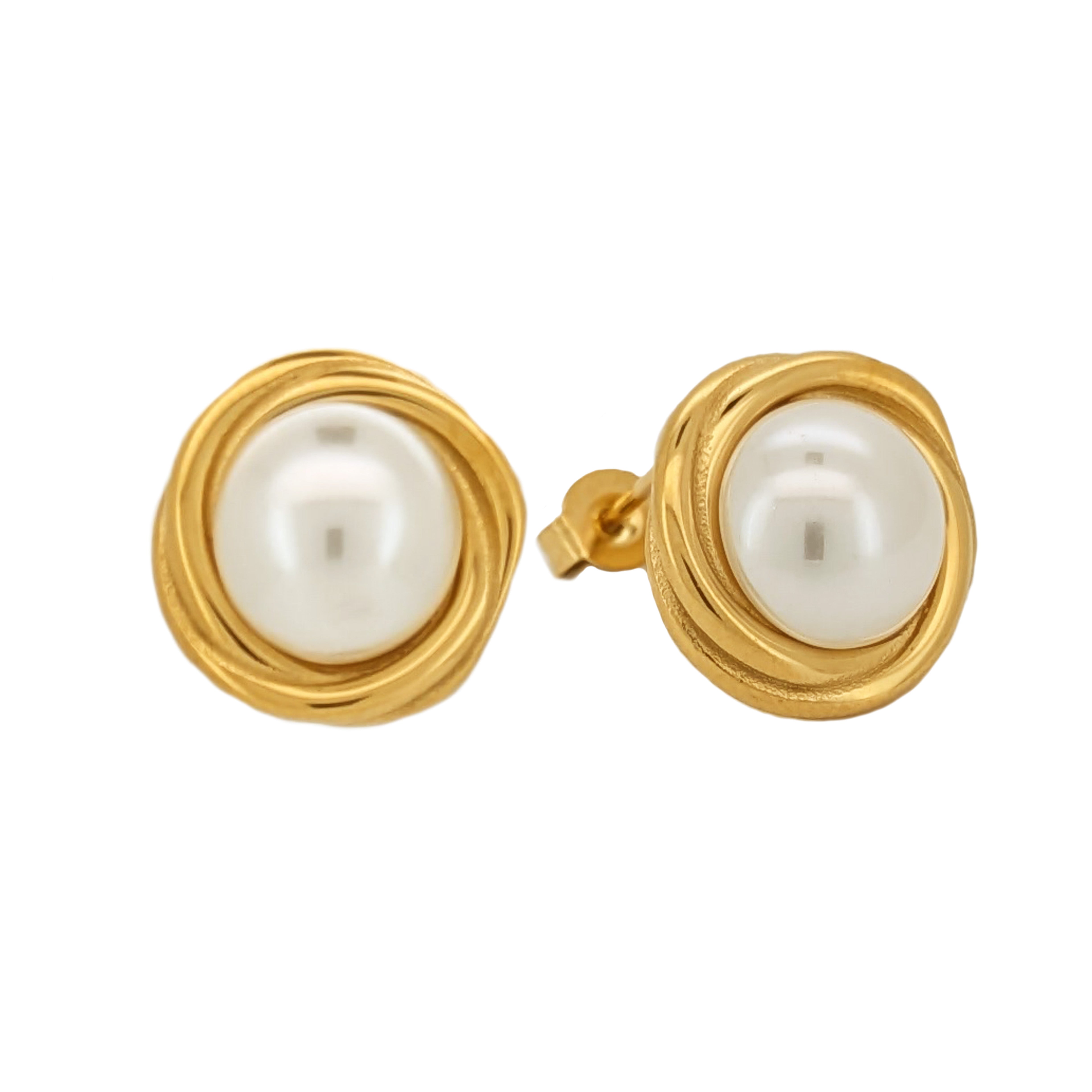 Delicate and timeless, the Rosette Earrings bloom with vintage charm. A luminous pearl rests at the center of a softly twisted golden frame, reminiscent of heirloom treasures passed down with love. Perfect for brides and beyond, they bring a touch of romantic elegance to any moment, whether it’s walking down the aisle or adding polish to everyday style.